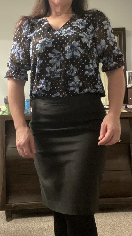 perfect fit the sleeves are great length im very happy with the texture of the blouse as well