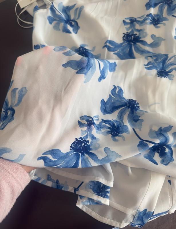 The blouse is very pretty. It is hard to find long enough sleeves to cover the bat wings and still be cool in the warmer months, so I orders this top. It is the rougher feeling polyester not sure how comfortable it will be.