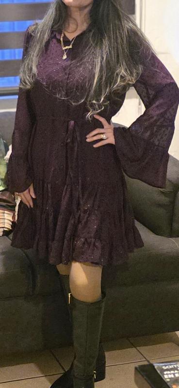 I ordered this dress for Christmas. I love Cece's brand but this dress exceeded my expectations. It can be wear during winter or summer. The color is darker than the pics and has like little dots ( no sure how to described the material) but it makes it looks elegant. I love the desig of the sleeves. I am 116lbs and I ordered size S.