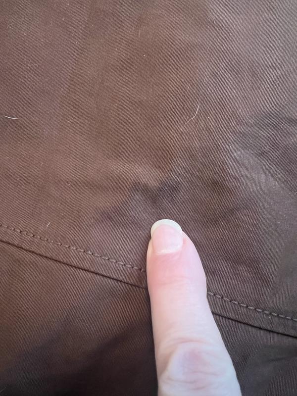 The pants seem nice but they have a stain on the leg. It is hard to see in the photo, but the pants leg is noticeably discolored. Disappointed as I expect better from Macy's -- even if the item is on sale.