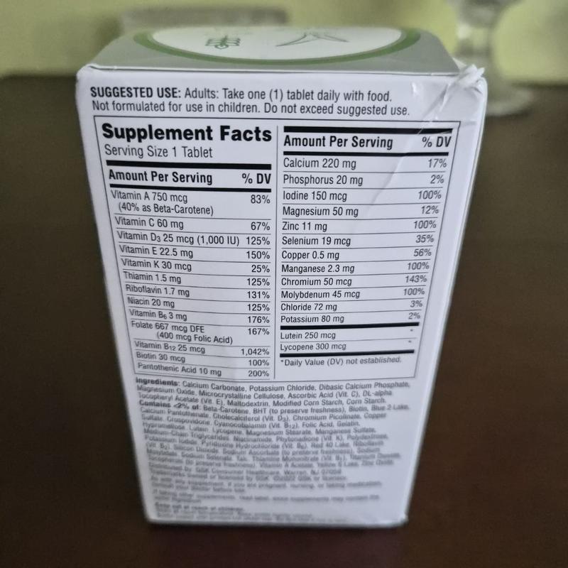 Centrum has a multi vitamin for our 50-plus community with A,C,D,E,K thiamin, Riboflavin, Niacin,vitamin B-6,folilat, vitamin B-12,Biotin,calcium phosphate, iodine,Magnessium, zinc,selenium, copper,manganese and Chronium. All in a once a day tablet. Comes in a bottle of 125 tablets. Helps heart brain and eye plus whole body health. All your minerals and vitamins in one.