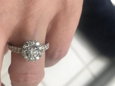 My husband and I upgraded my old ring for this one, the saleswoman made a big marketing about this ring, it is pretty in fact. We bought it in August and we thought we were getting a good deal, it took 6 weeks just to get it resized so I've been wearing it for less than 2 months and my white gold ring is already turning yellow, I'm super disappointed because we thought it was a good quality ring, my old one I had for over 2 years and it was still the same color as when he bought. Thinking about returning it.