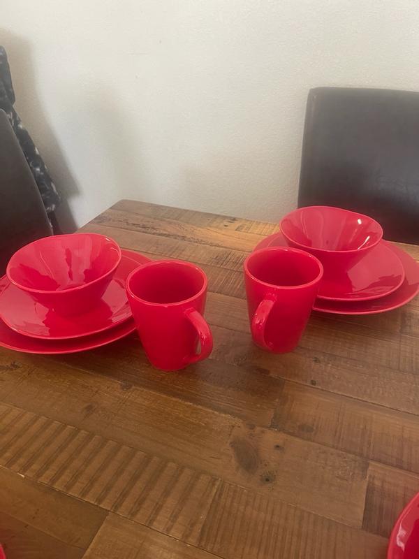 This is a fantastic dinnerware set! It’s very heavy duty and high quality. The red color is perfect, not only for Christmas, but for every day use. The waved edges give in a unique, but subtle look.
