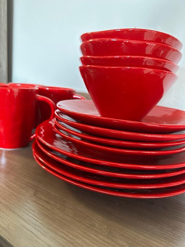 We are thrilled to hear you LOVE our Berry Red 16pc Dinnerware set. What a beautiful shot you took of it! We love the organic shape and the durable bright red stoneware! This set is a must have for the holidays! It matches too with the Holly & Vines STONEWARE set, also organically shaped. The two blend perfectly and both collections come with matching serveware, bowls, etc. We hope you have a wonderful holiday season! Enjoy!