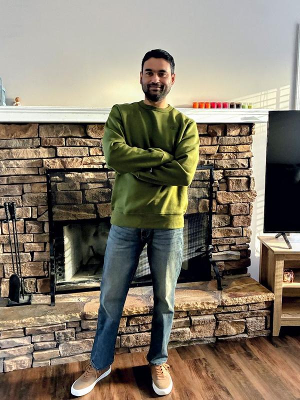 This Champion crewneck sweatshirt is super comfortable and soft. The fit is perfect, not too tight and not too loose, and the material feels thick and high quality, which makes it great for cooler days. The color is true to what’s shown online and looks even better in person. It has a nice stylish yet relaxed look, so it works well for both lounging and going out. I’ve been pairing it easily with jeans or joggers and it always looks good. Overall, I’m very happy with this sweatshirt and would definitely recommend it.