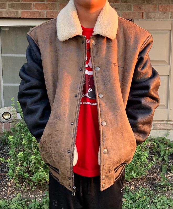 This jacket is straight-up fire. The vintage varsity style gives it that old-school college vibe, but the faux shearling lining makes it super warm and comfortable — perfect for chilly weather. The quality feels premium, and the Champion logo details really stand out without being too flashy. It’s thick but not too heavy, fits true to size, and layers nicely over hoodies or tees. I’ve gotten a few compliments wearing it already. Great mix of comfort, style, and that retro look Champion is known for. Definitely worth the price if you want something that feels classic but still modern.
