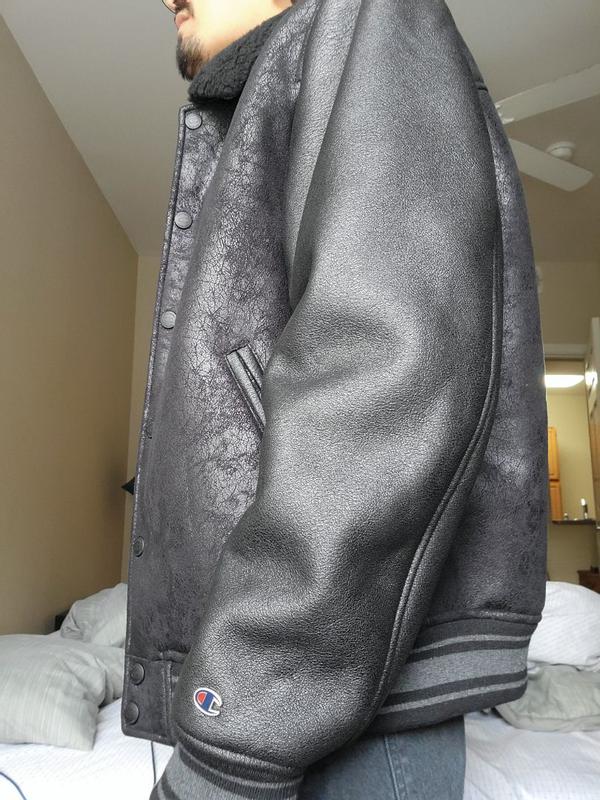 Absolutely love the Champion Faux Sherling Varsity jacket! The style is great and it's perfect for fall and winter weather. It's extremely comfortable and dies well in light rain.
