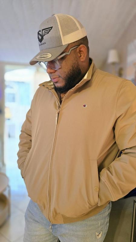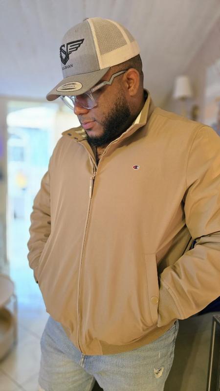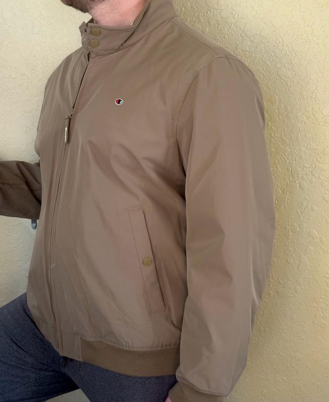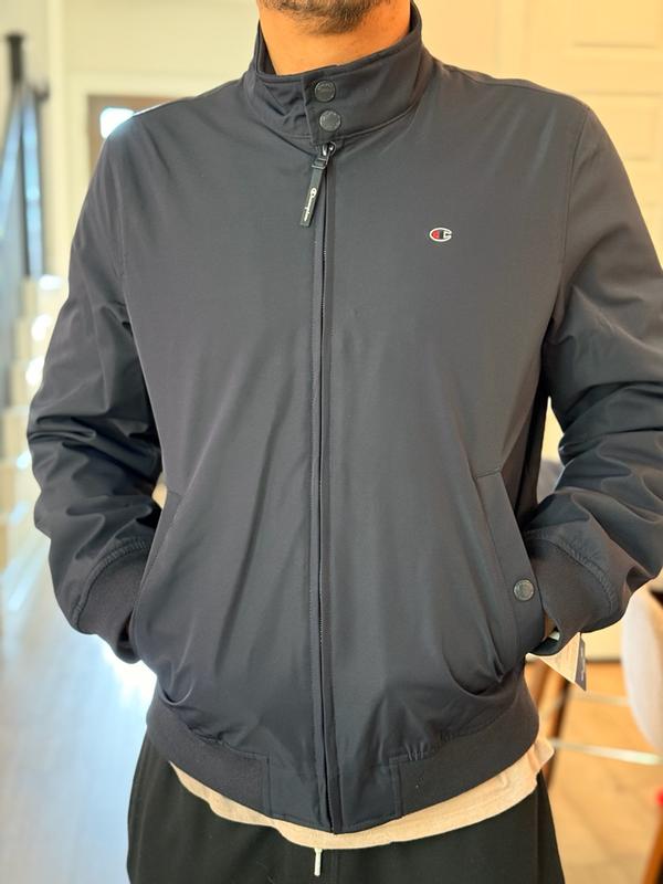 The Flex Tech Golf Jacket from Champion provides protection from the elements in a medium-weight shell. Full zip front, with two side button-clasp pockets and a hidden interior zip pocket on the left side. Small Champion insignia on the left chest, and not too loud or attention-seeking; perfect for those looking for minimalistic brands. The coat has a regular fit to it - at 5’11” 210 lbs., athletic build, an XL fits semi-loose without being too baggy or slovenly. A Large would have been fitted and snug, so size up or down depending on your style preference. The jacket provides warmth for temperatures seen on a cool fall or warm winter day. Very soft and allows for easy movement - perfect for those early morning tee times.