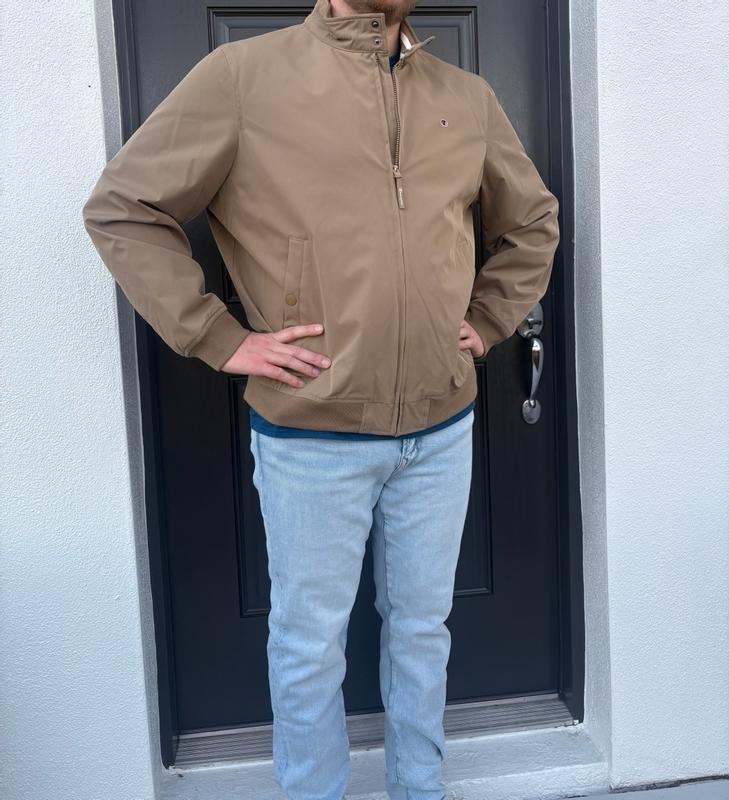 This Champion golf jacket genuinely surprised me. I know Champion has historically leaned more streetwear and athletic wear when it comes to fashion. However, this jacket is super sleek with a classic, intelligent design. The striped collar interior is super stylish and adds the option to give a more casual, vintage vibe when you have the jacket unzipped and the collar folded down. You can also have the jacket fully zipped and the collar buttoned for a very sleek and monochromatic look. I think the thickness is a perfect level to keep you warm, but not hot. Great for mildly cool temperatures. The jacket is made with the typical windbreaker material that keeps the wind from penetrating the fabric while also being water-repellent. There’s also a super cool zipping pocket embedded in one of the jacket panels near the main zipper. It could totally fit a phone, wallet, and keys. The only thing that would make this jacket a perfect 5 stars is if the champion logo was the same color as the jacket itself. It would sacrifice some of the Champion branding visibility, but it would make the jacket more suitable for a more formal or professional setting where you don’t want a colorful logo visible on your chest. Overall, this jacket is great for casual settings in cooler environments. It’s a great quality and versatile design from a class brand!