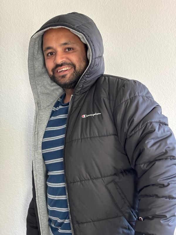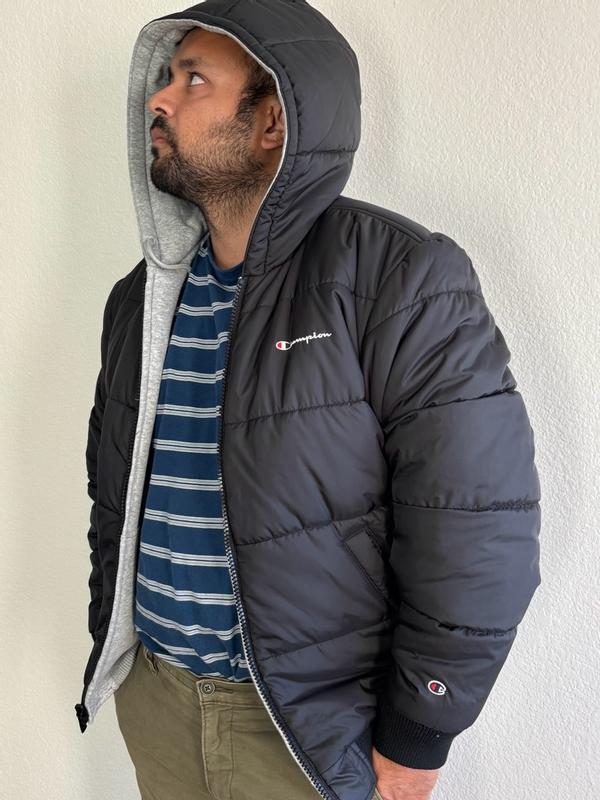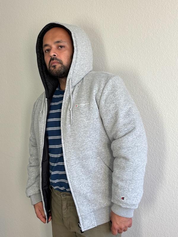 This reversible coat from Champion is a great coat. It’s very warm and I love that I can wear it as a lined grey hoodie or as a lined hooded puffer jacket. The fit is excellent and exactly as expected.