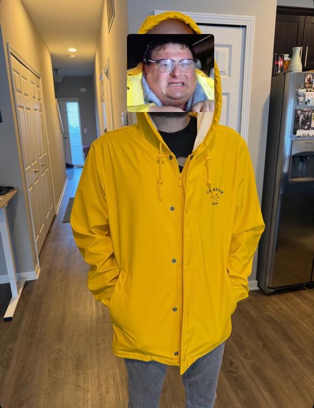 I’m not usually a champion fan, but WOW! This product is actually great. It’s rubberized in a thin breathable way. It’s 100% waterproof, lightweight, and doesn’t feel uncomfortable when wearing. It’s lined with a nice soft fabric, and fits perfectly. I chose the tan option which is classic and matches so many things. I can move freely in this item, and it even comes with a hood for extra rain protection. Can i say, I’m excited for the next rainy day? I want to wear this everytime! Great job, champion!