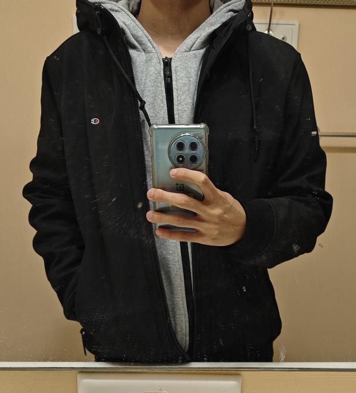 The Champion Soft Shell Hoody Bomber With Bib blends style and utility with a sleek silhouette and layered bib/hood combo. It offers solid warmth without bulk. The fit feels true to size snug but roomy enough to layer. In use it feels soft and flexible, delivering notable comfort. Strong seams suggest good durability even with frequent wear.