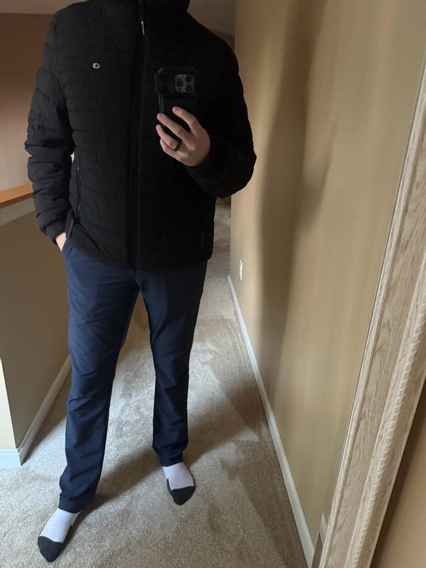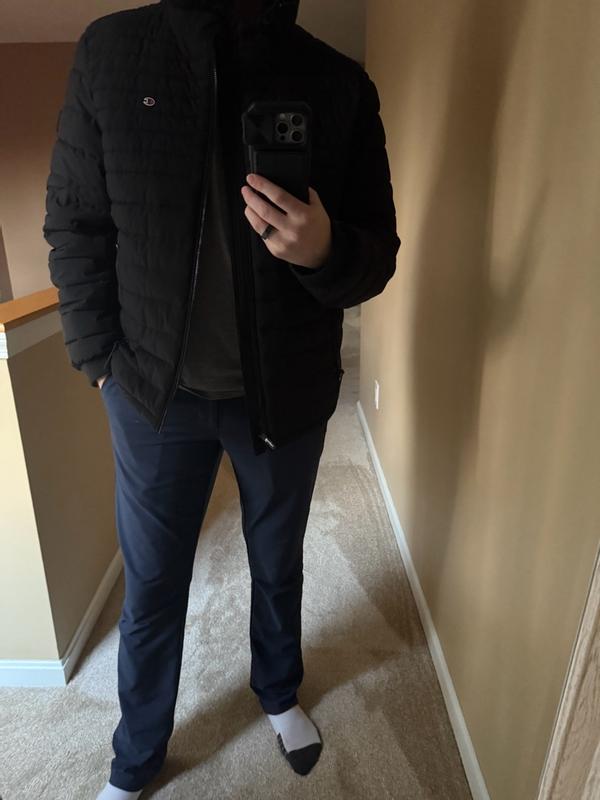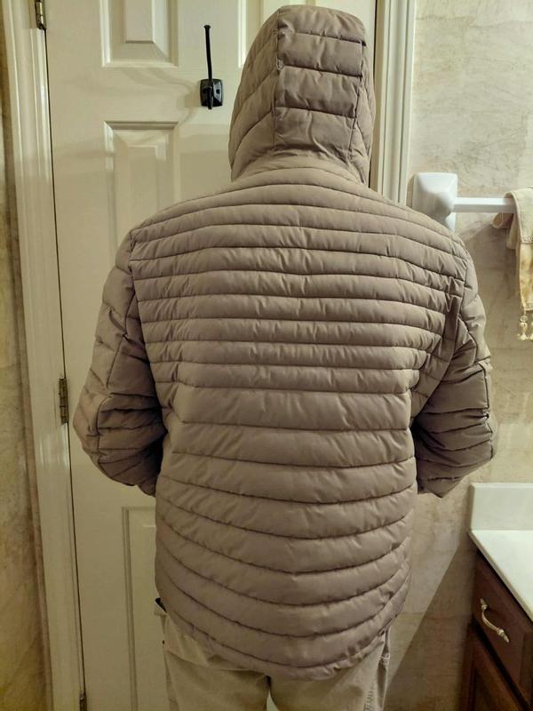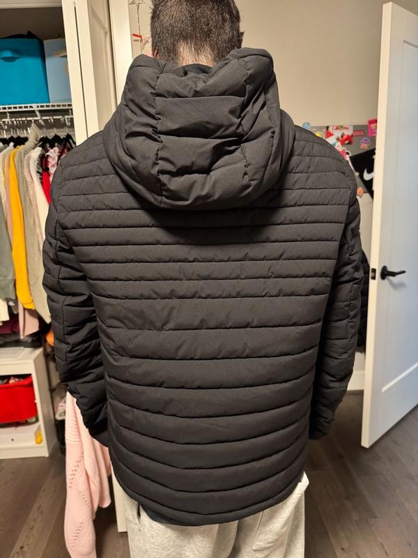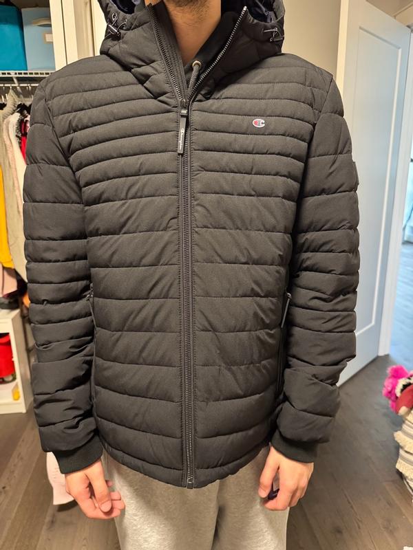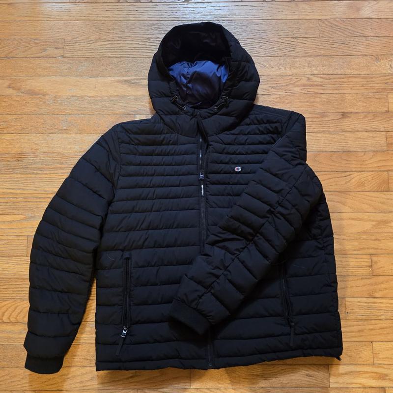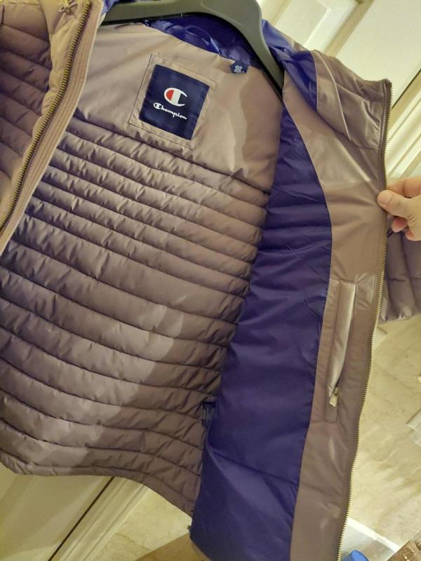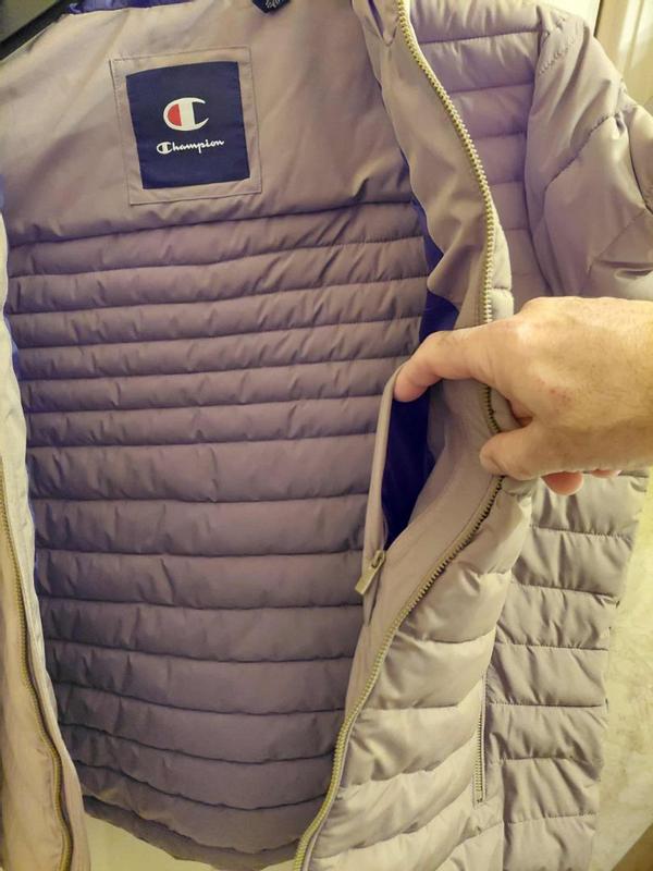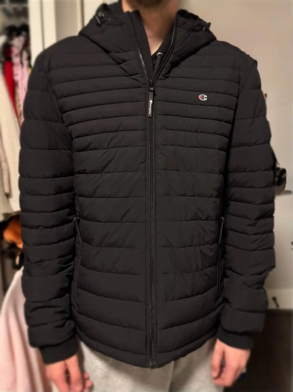This quilted stretch hoody by Champion is such a versatile jacket. It fits perfectly, is easy to clean, and is a perfect jacket to fold and pack for all your winter trips. I really like the inner close pocket to keep items safe and the front pockets to keep hands warm. The hood has a pull toggle that is easy to open and close. Great hoody that doesn't wrinkle and keeps you warm.