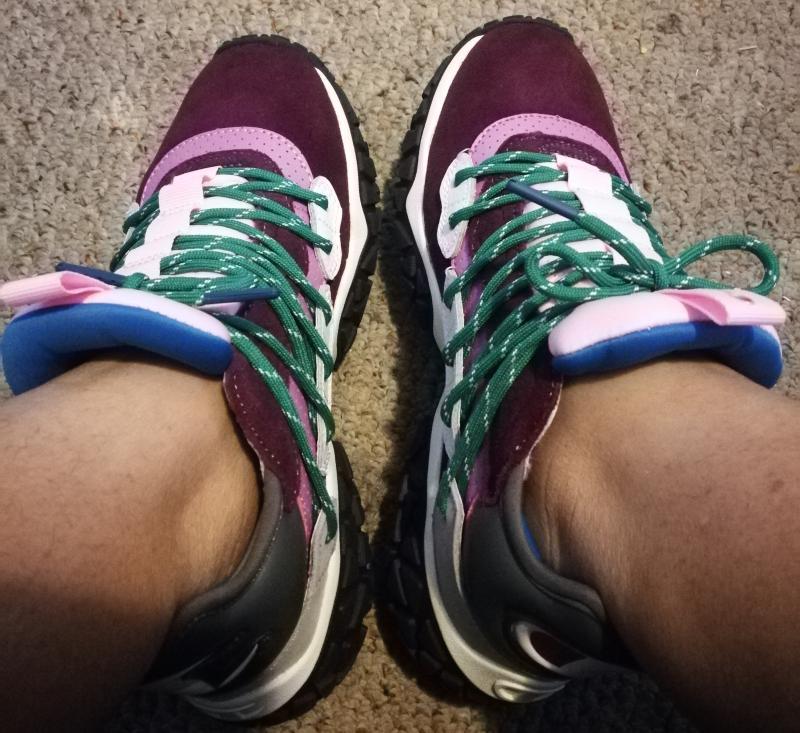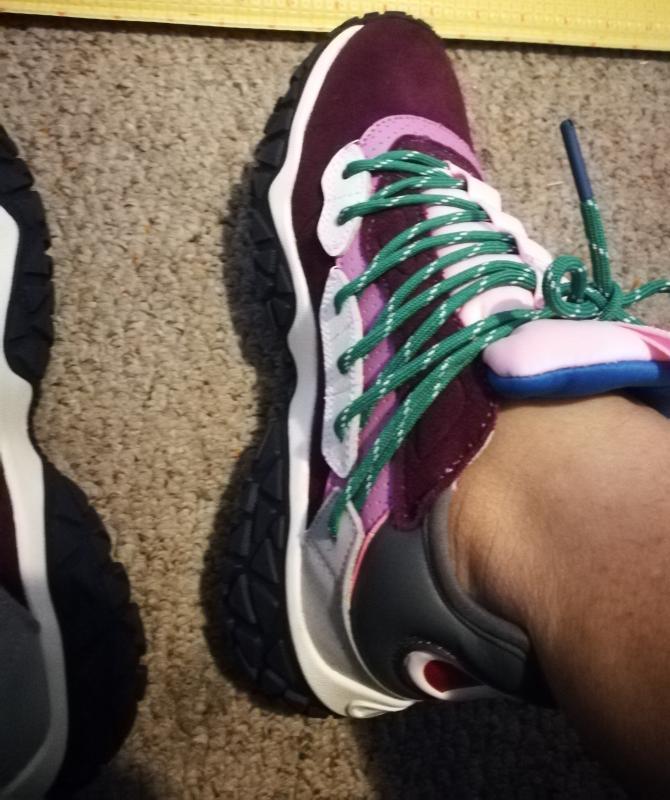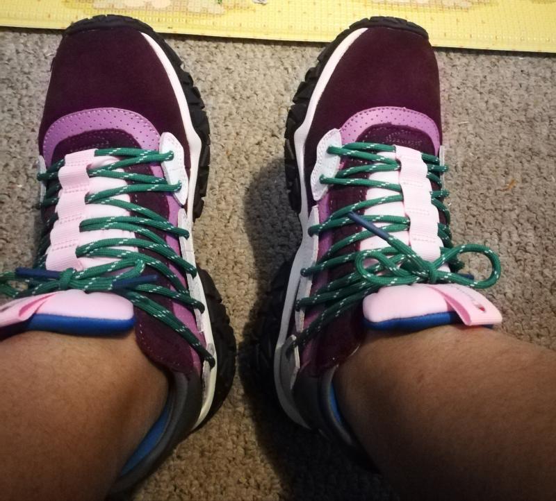 These are most comfortable shoes I have ever had. They looked bulky on the first sight but I was amazed when I wore them. The sole has thick padding and the upper provides good coverage to the foot and are very comfortable to walk in. Shoe itself look well made and appears durable. They are colorblock with shades of purple/ pink which look nice. But I didn’t like the bright green laces in a purplish shoes, it is too much of contrast for me. May be, I will replace it with lighter shade or just plane white. Apart from the laces( which of course my personal color choice)I liked everything about this pair of shoe.