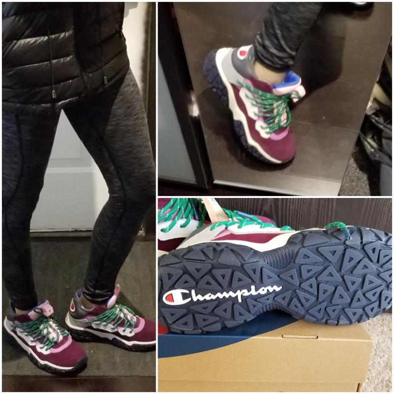 This was my first experience with a Champion shoe. I thought the fit was great and they were true to size. I really like the color scheme of this shoe. The little strap on the tongue of the shoe is such a clever idea. It really helped to secure them in place. I definitely view these as a comfortable walking shoe. Overall, I'm happy with them and would recommend.