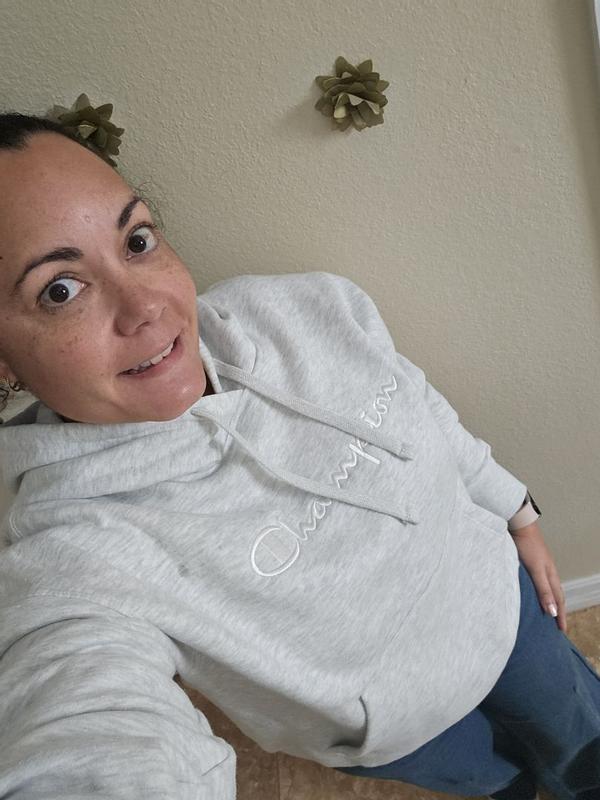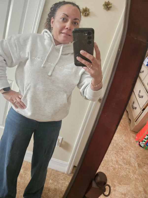 This Champion hoodie is perfectly oversized without being bulky so it’s extremely flattering. It is ultra soft and warm yet breathable so it’s perfect for everyday use. The embroidered logo has beautiful, even stitching and blends so seamlessly into the color of the sweatshirt that it is hardly noticeable until you get close, which gives it a quiet luxury feel.