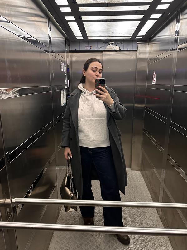 This is the most comfortable over the head and no zipper needed hoodie you can own. I've had a champion hoodie in the past but this one beats that. So warm wearing it in an average of 45° weather. Like the neutral color which i can wear with anything. I'm usually a petite in size (5ft tall) but the sleeve and hem hit perfectly. I sized one size larger than normal so I can wear as an oversized piece. Totally worth buying!