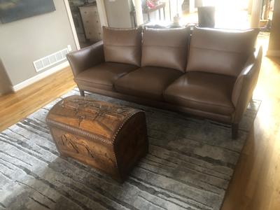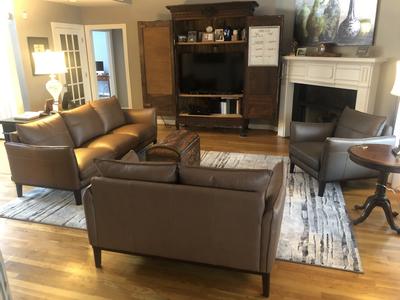 This couch is really comfortable I love the color and the leather is pretty durable, my dog jumps on the couch and hasn't left any scratches. I have a pretty small living room so it was nice to find a less bulky couch that was comfortable, durable and stylish! I also have the matching swivel chair, arm chair and foot rest, highly recommend!