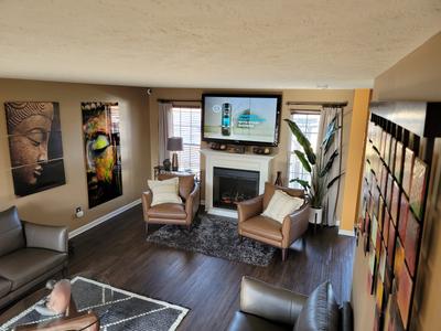 Looks very sharp and we are very happy with both the comfort and finish. It goes great with our light gray couch also purchased from Macy's. These chairs were part of the set on backorder.