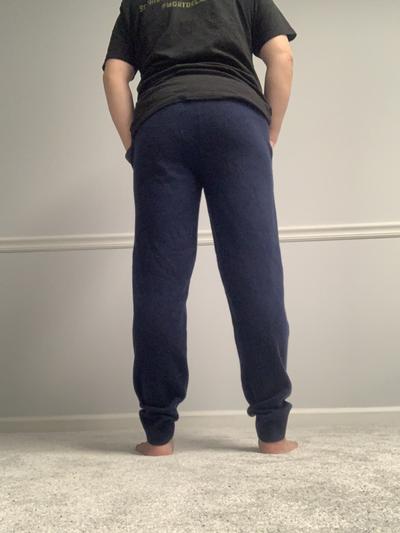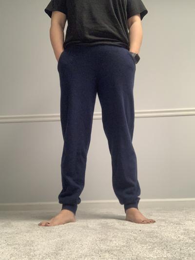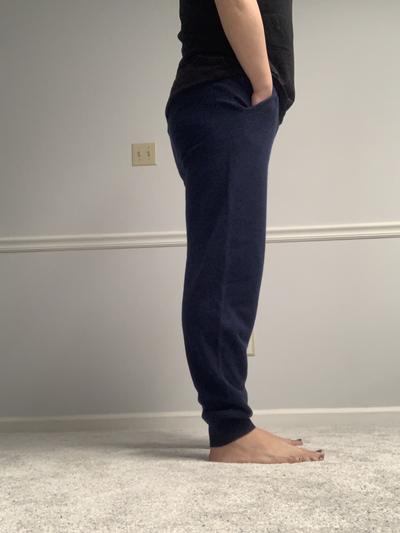 These are really nice cashmere pants; I love the pockets and no drawstring. The cashmere weight is nice and hasn't pilled after several wearings. Fit is great and the pants are very versatile.