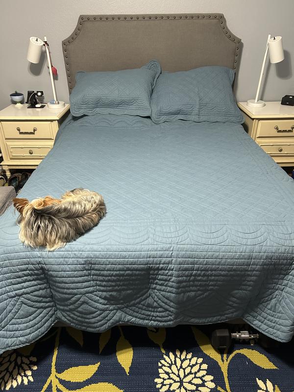 Looks very nice on the bed, fabric very soft. No idea how it holds up since I just purchased it