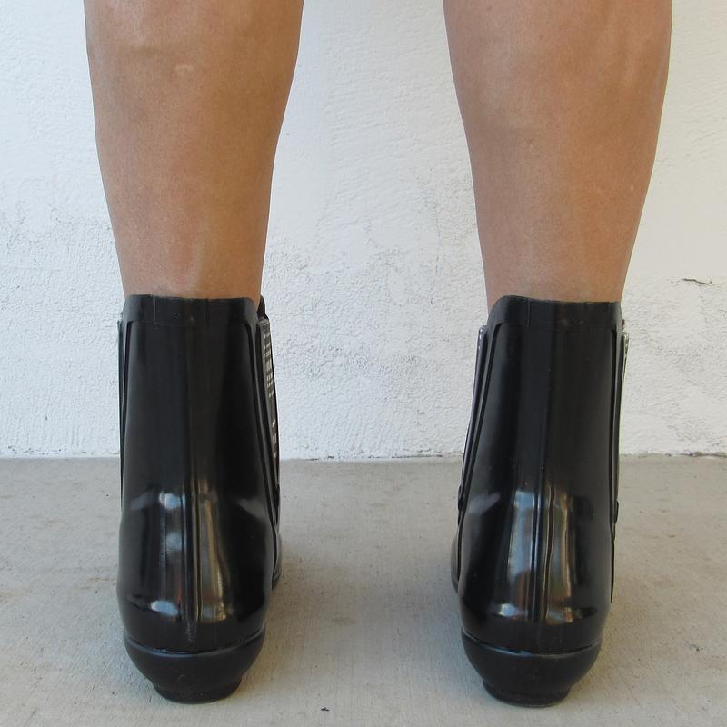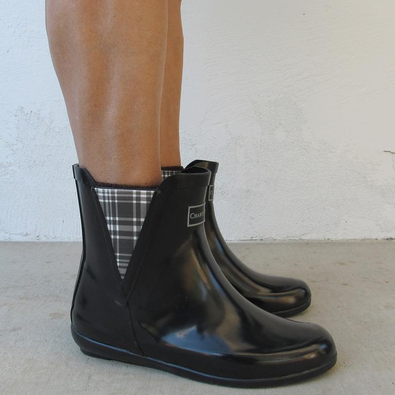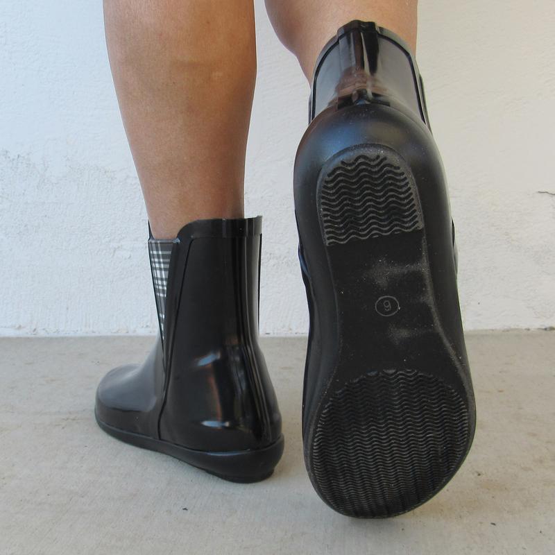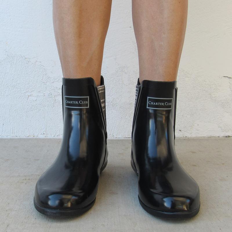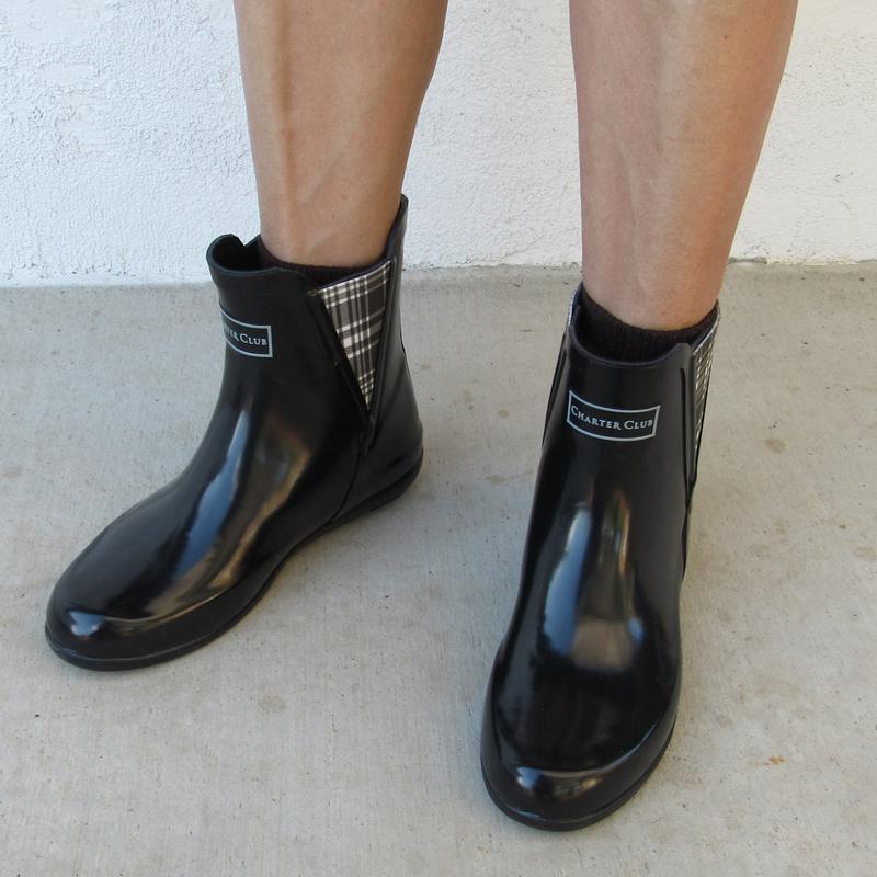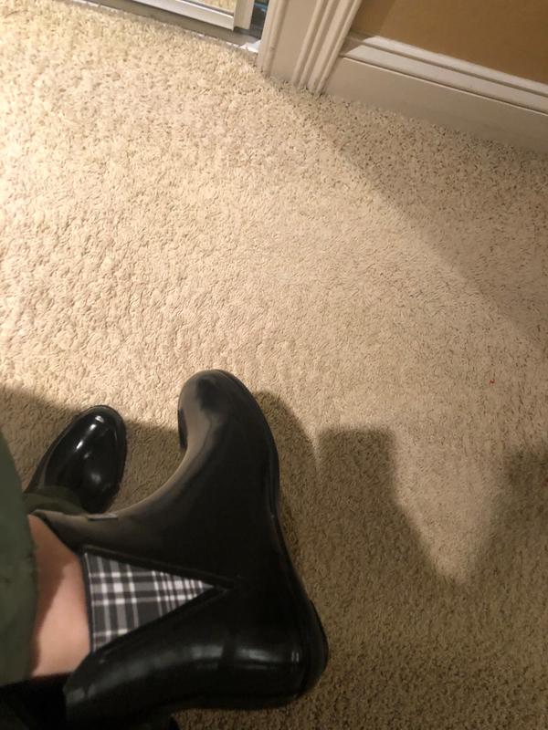 True to size rain boots. My regular shoe size is 9 medium and the size 9 boot fit perfectly. Also, they are easy to put on.