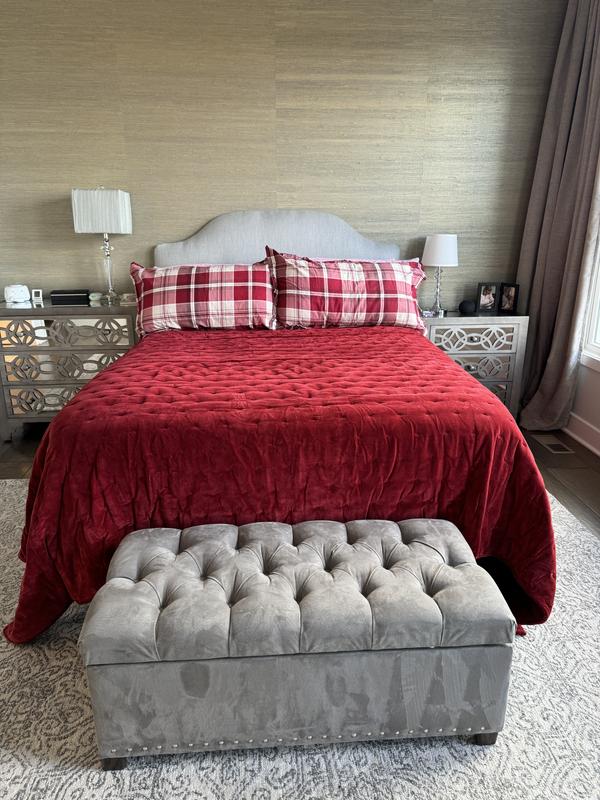 Very nice quilt, nice and plush I thought it was soft and warm! Its seems to be of nice quality; I got the gray quilt and it’s just a little darker than shown in picture. It is unfortunate that they sold out of the king size bed sham I sure hope that have again next year. I definitely don’t think I will be fitting the king quilt in my washing machine might be needing to bring to a cleaners.