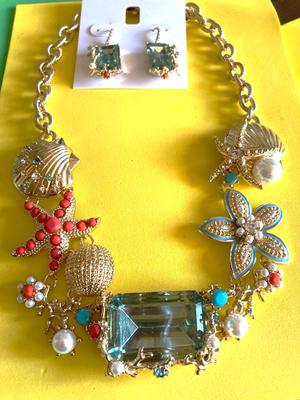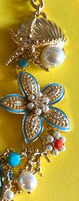 Absolutely gorgeous statement necklace! I love everything about this timeless piece of jewelry: unique design, beautiful color combination, it's quite versatile and very well made. I'm sure it will look great with many outfits, but with a white summer dress it will look absolutely stunning. I purchased it together with matching earrings and a shell bangle bracelet. Needless to say, I live in Florida, so I can wear it anytime and anywhere all year round! Thank you Charter Club! Thank you Macys!