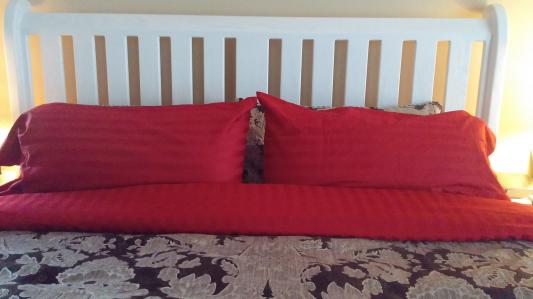 An affordable and functional product. The stripes make it so easy to make the bed. NO guessing which direction the sheet needs to go.