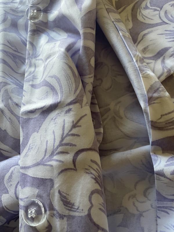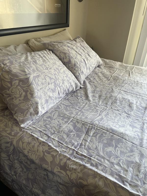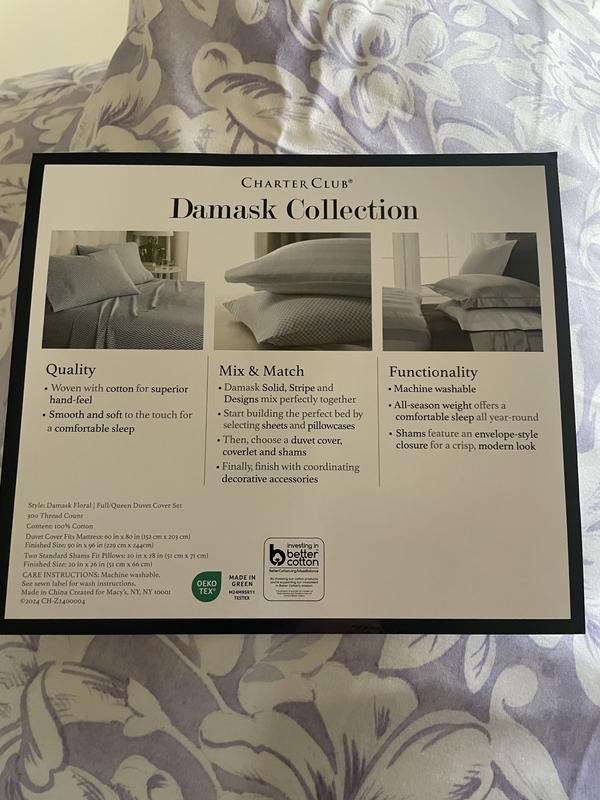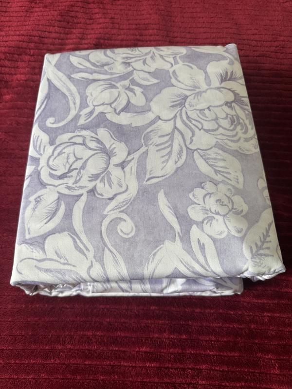 I love this damask comforter set. It is such a beautiful lavender print pattern. It’s also good quality and a very soft material for a bedspread. The king size was a perfect fit for my king sized bed.