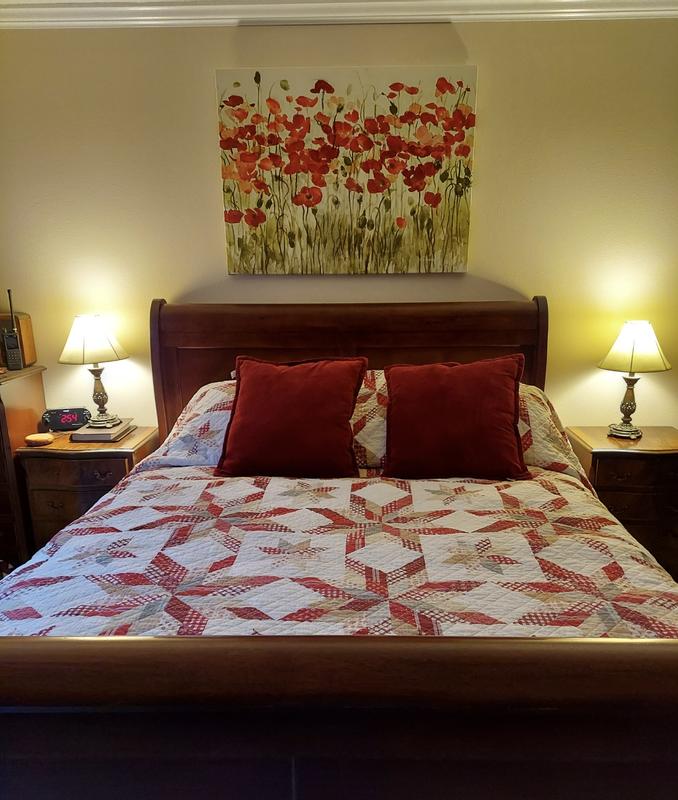 I loved the look of this quilt for the winter. It’s festive without being Christmas themed. Washes well too.