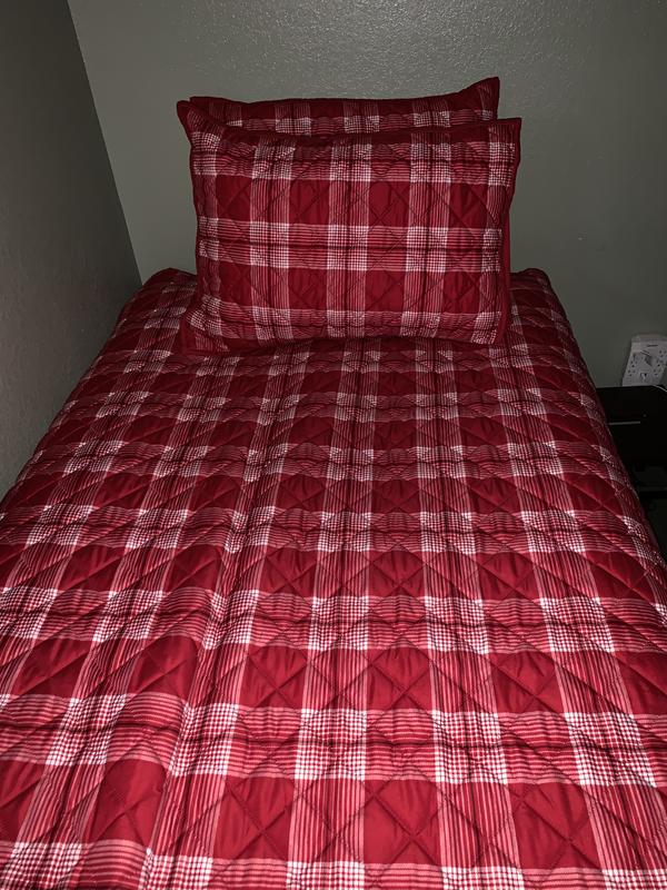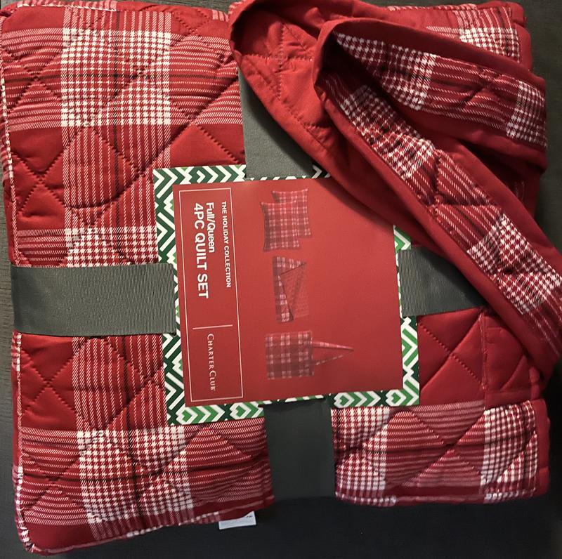 Got this full/queen comforter it’s great Christmas color … beautiful. I wish it the comforter has little more warmth or more sponge in the comforter. Size is perfect and good two shams. The cotton material cover should have been better
