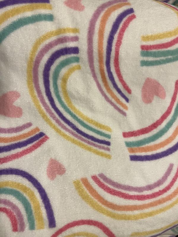 Love how there is a plush throw that matches this. They look so cute in my daughters room together. Things to note: this towel is very long and narrow. So proportions are kinda off. I wish it was a little less long and bigger in width but it does the job!
