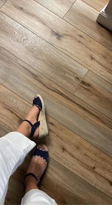I bought the Charter Club Luchia Platform Sandals in Black. So comfortable, lightweight and the 2 inches heel is perfect for me. I was hesitant in ordering at first because I thought it may hurt my feet because it’s not leather. I wore it for 6 hours the first time and it didn’t hurt. It even looks good on my wide feet.