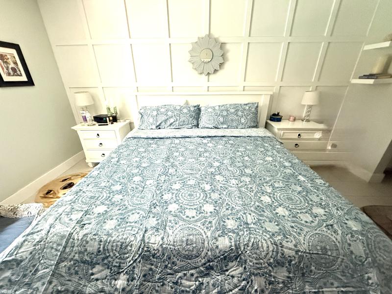 I'm absolutely in love with this comforter set! It's incredibly cozy and soft, and the design looks amazing. The quality is top-notch, and it's exceeded my expectations in every way. I highly recommend it to anyone looking for a comfortable and stylish bedding upgrade!