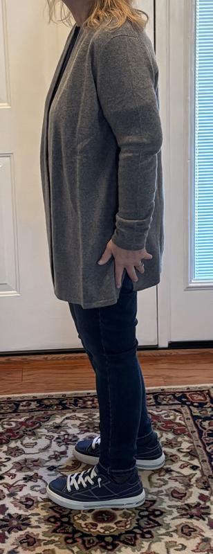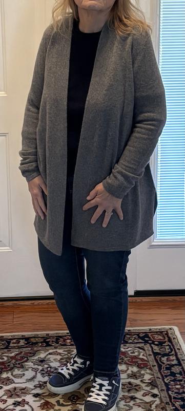 So glad I found this petite gray classic open cardigan. The cashmere is beautiful. Fits perfectly.