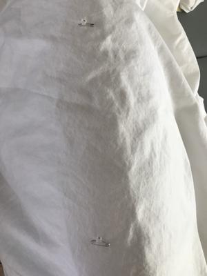 Great high quality fabric. Corners are ruffled with extra fabric for corners and sides. Fabric feels nice and has a little shimmer on the white. Charter Club is a great brand.