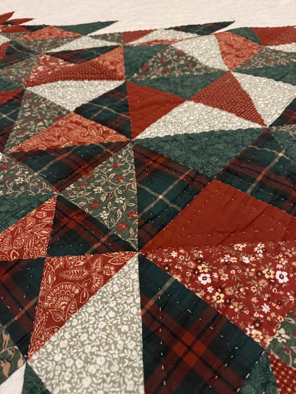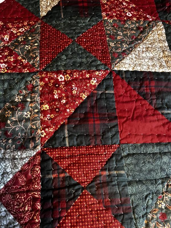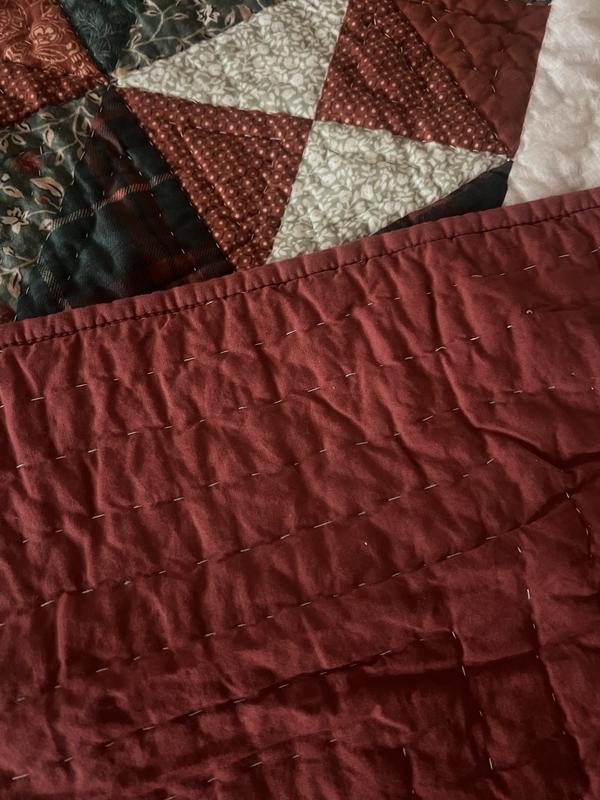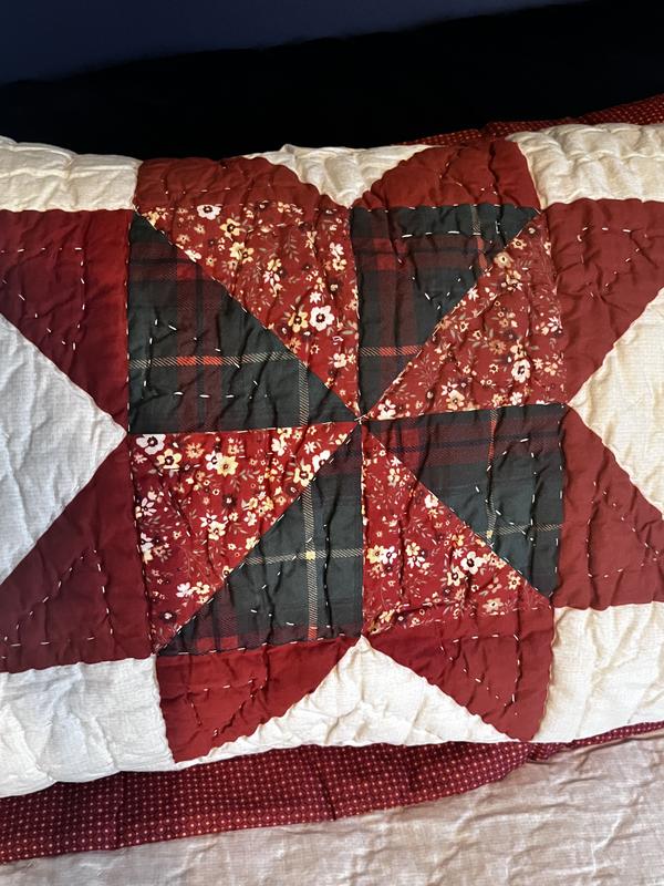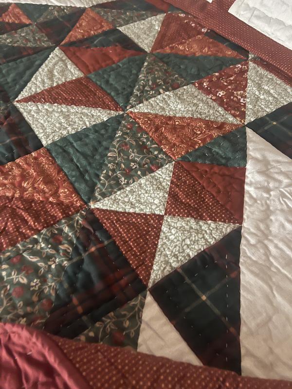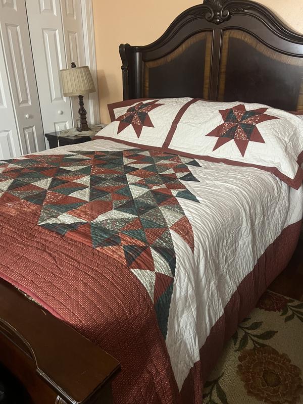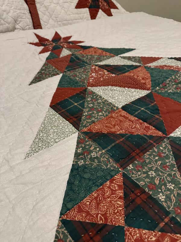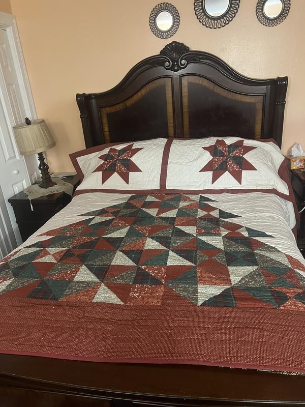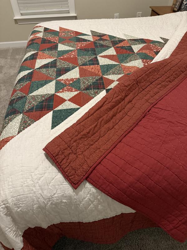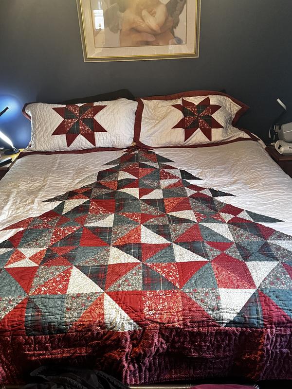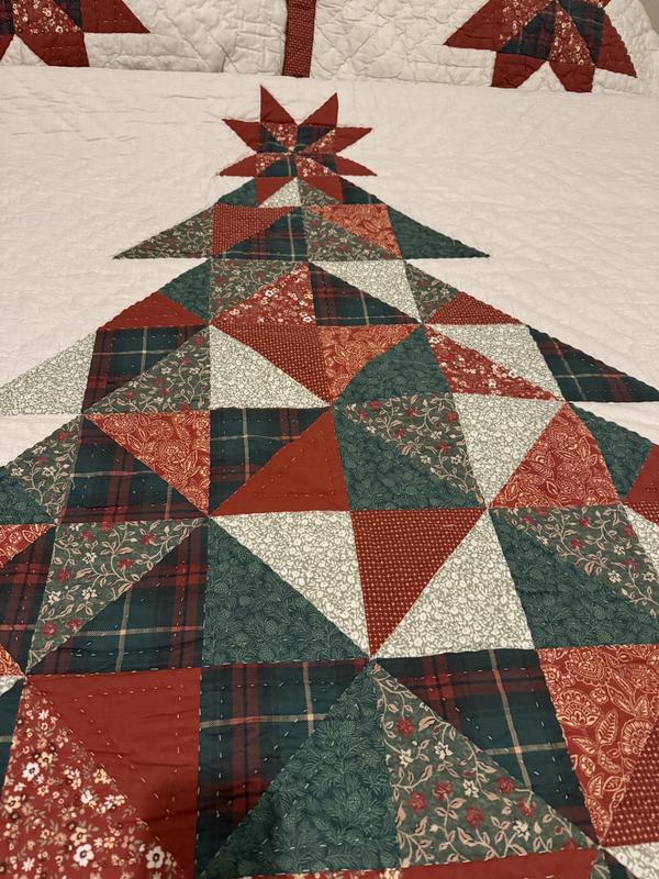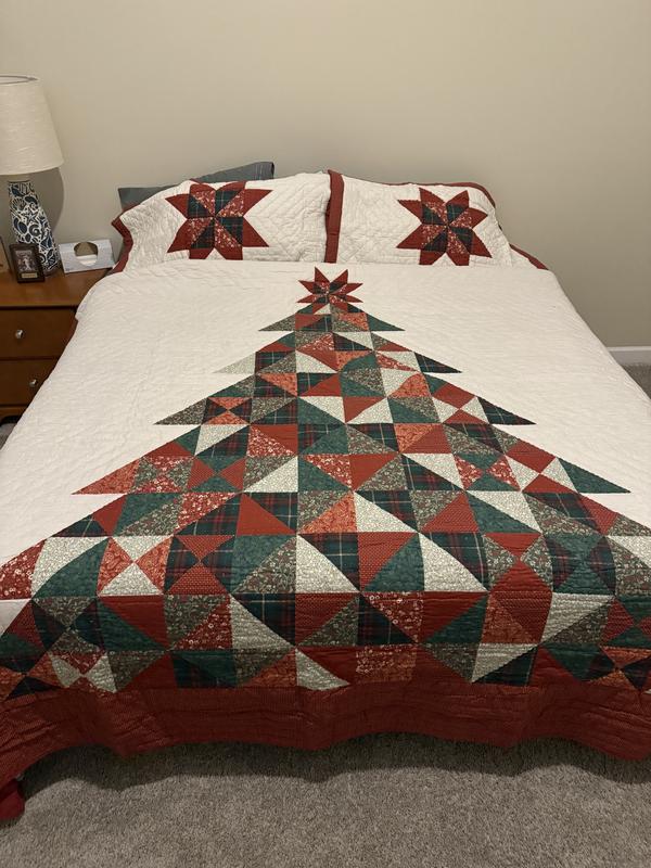 This quilted comforter is so pretty! The colors are very rustic so they give such a warm feel! It’s not too heavy yet it’s warm. The tree fits perfectly on our king sized bed. The pillow covers tuck in so all of your pillow stays inside which I like. This comforter definitely is putting me in the holiday spirit!