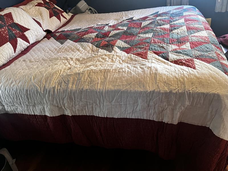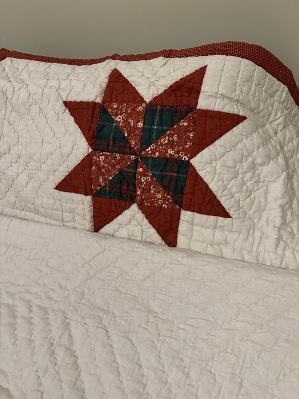 I love this quilt set! I’m usually not a quilt person but this particular design I absolutely love it. The Christmas tree pattern in the center is very cute, and the mix of warm red, green, and cream colors give it a cozy, festive touch just perfect for the holidays. The material feels high-quality and soft, with just the right amount of weight to keep you warm even in the cold nights. I got the king size for my queen size bed because I wanted the bigger look. Also the matching pillow shams complete the look perfectly.