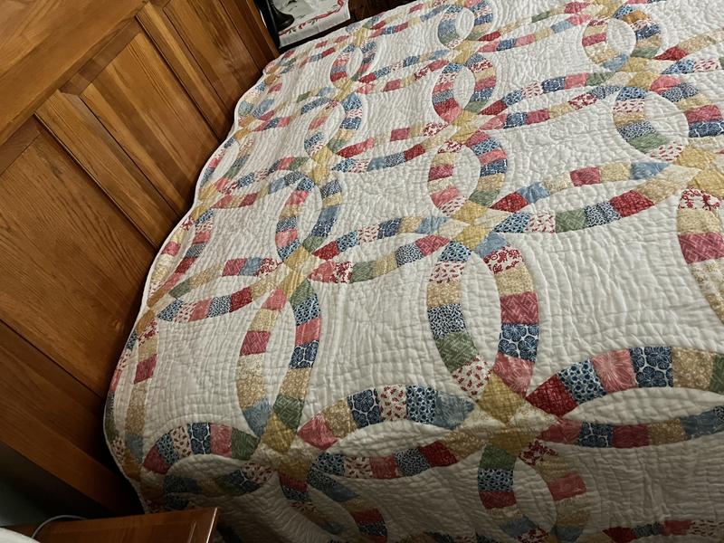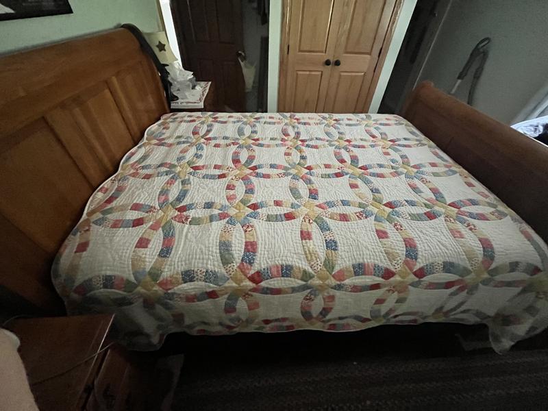 This is the quilt you used at grandmas!!! The colors are vibrant. The design looks like it was handmade and even has the little thread stitching visible. It is a heavy durable quilt that will hold up. Very nice.