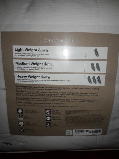 I have very pleased with my choice. It is the right weight for me and the cover was soft enough for my purpose which is the insert to a duvet. I’ve never been disappointed by Charter Club in all my bed and bath needs. I would not buy it so often if it was not a great product.