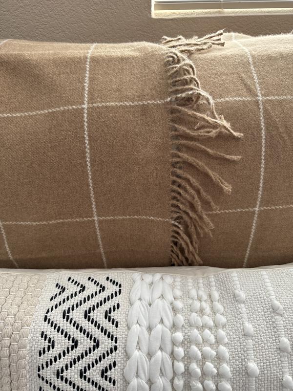 I bought two for myself in camel and liked them so much I bought two more in cream/grey combination for gifts and was told they were well received. Very soft, nice weight and the colors are rich and inviting. Very pleased with these purchases and highly recommend as a gift.