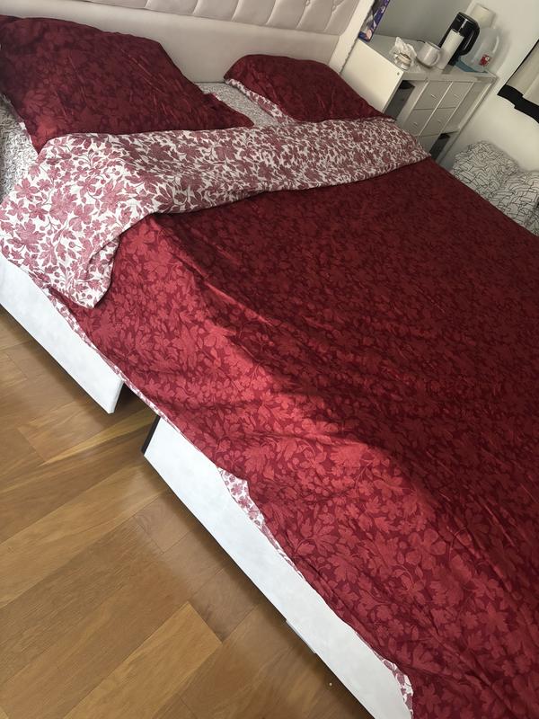 Looks pretty and I decided to keep it but I didn’t measure the shams I already owned and the sham covers in the set were too small and they’re not reversible. they fit a standard size pillow. see picture