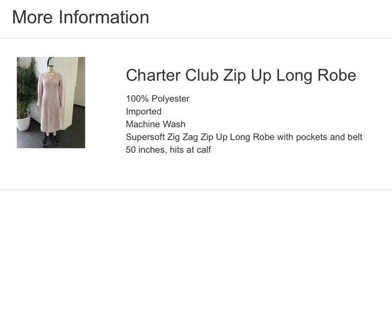 Am easy on - easy off zipper bathrobe. Very soft and comfortabe to wear every season.