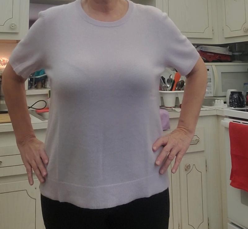 I want to respond to two themes I've seen in reviews. 1. The feel of the sweater some writing it's not soft to the touch. It feels scratchy out of the bag but once on the fibers soften considerably. This must be due to the manufacturing process. Its most notable on the printed animal print sweater this year. 2. The fit being larger. It is larger compared to other brands. I am 5'5", 38D, 188 and I purchased the XL in the short sleeve. It fits considerably smaller than the crewneck and long cardigan (I purchased these in a large) In each color there are major variations in size. depending upon where you carry weight this may make the sweater unbearable. Style: the bottom is more straight versus a banded hem - there are two 1/2 inch slots on each side. This gives this sweater a looser fit over the waist. below crantini in large. Pearl taupe in large.