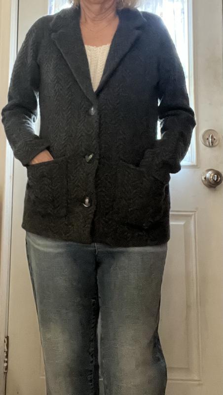 Beautiful sweater! It fits perfectly. I changed the buttons because I felt that the original buttons were too large and thick for the design of the sweater.