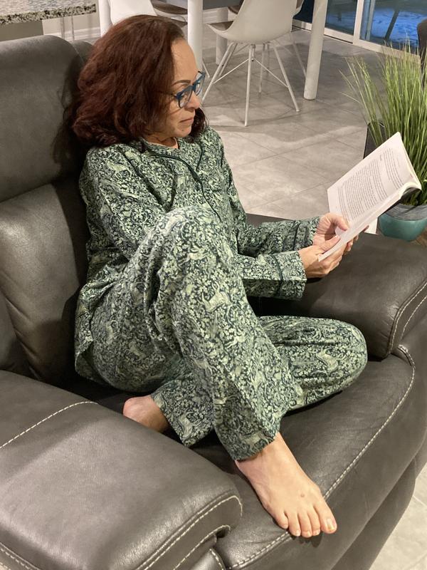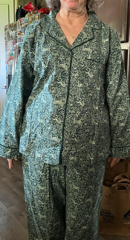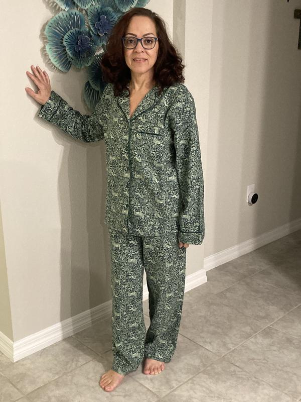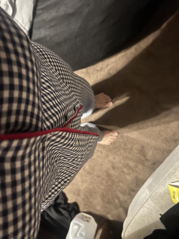 I really like these pajamas this is my second pair. This time I bought the red plaid and they are perfect for the holidays. The red is very pretty. The material thickness is perfect. I did size down on both pairs but I do not like baggy pajamas. I weigh 121 and am 5’ 4” and bought XS.