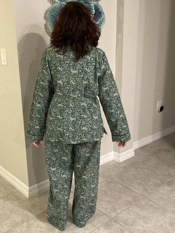 I like the material of these PJ's and they are well sewn but they are very oversized. Being cotton they shrank quite a bit after washing and drying but the elastic in the waist was huge. I thought I could take the elastic in but it was sewn in place. It's a job to take in correctly. I ended up just over lapping the waist band and hand stitching. I planed on using a set as a gift but I couldn't knowing it would need altering.