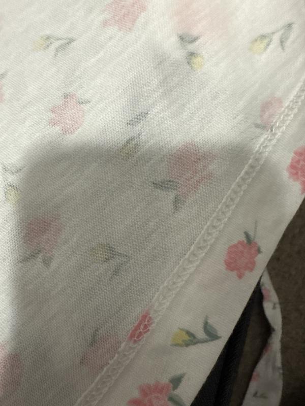 This 3 piece set is lightweight for spring/summer. I found them to be a bit shapeless and not particularly soft. The third piece is nice for covering shoulders when between seasons, the sleeves were a bit too short but not short enough to be intentional as a 3/4 sleeve. The pants were a good length for me at 5’5” which can be hard to find in sizes that aren’t petite. The whole color way is fairly see through, so it isn’t anything that I would wear around the house with my older children. The floral print felt a bit grandmotherly also in combination with the cut. The tank fit smaller than the pants. Overall, they are not a favorite due to fabric, cut/fit and the thin and see-through nature of the fabric. The seems do seem to be sewn well without any fraying. But for the other reasons, these won’t be on a heavy rotation.
