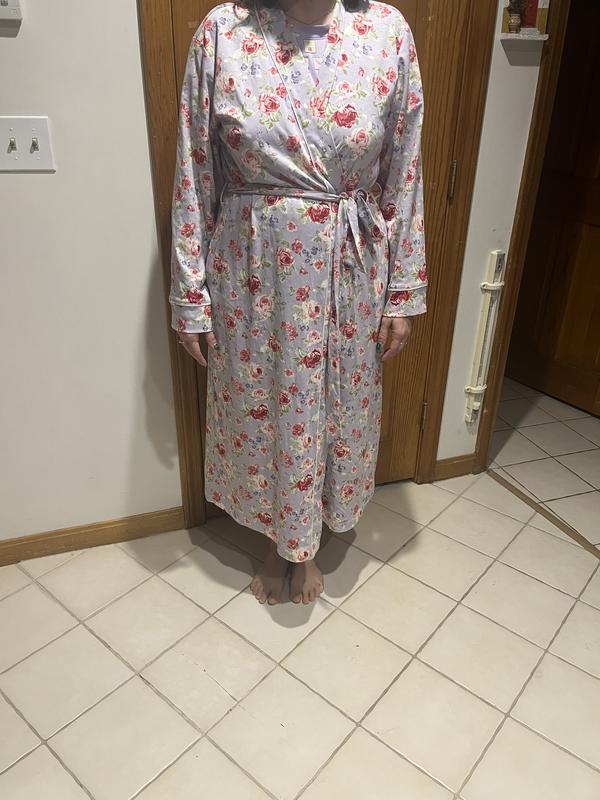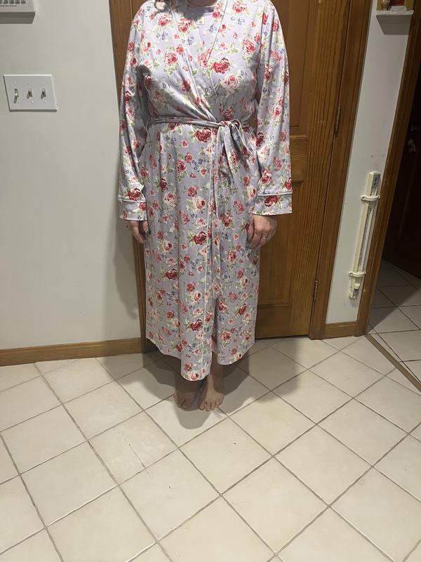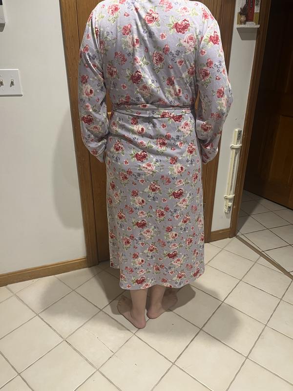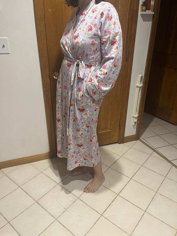 I ordered this robe based on the reviews, saying how soft and high-quality it was! It just arrived today and I can’t take it off. It is so luxurious feeling. It is stretchy in just the right way so that it hugs your body. The weight is nice and light, I will use it year-round because I hate heavy robes. I got the rosebud tossed design and it is absolutely charming! Wish I could find a matching gown. I bought the medium/ large and it is nice and generous for comparison. I am 5 foot seven155 pounds.